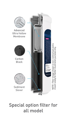 2. Carbon block | 2. Advanced Ultra Hollow Membrane (UF filter) | |